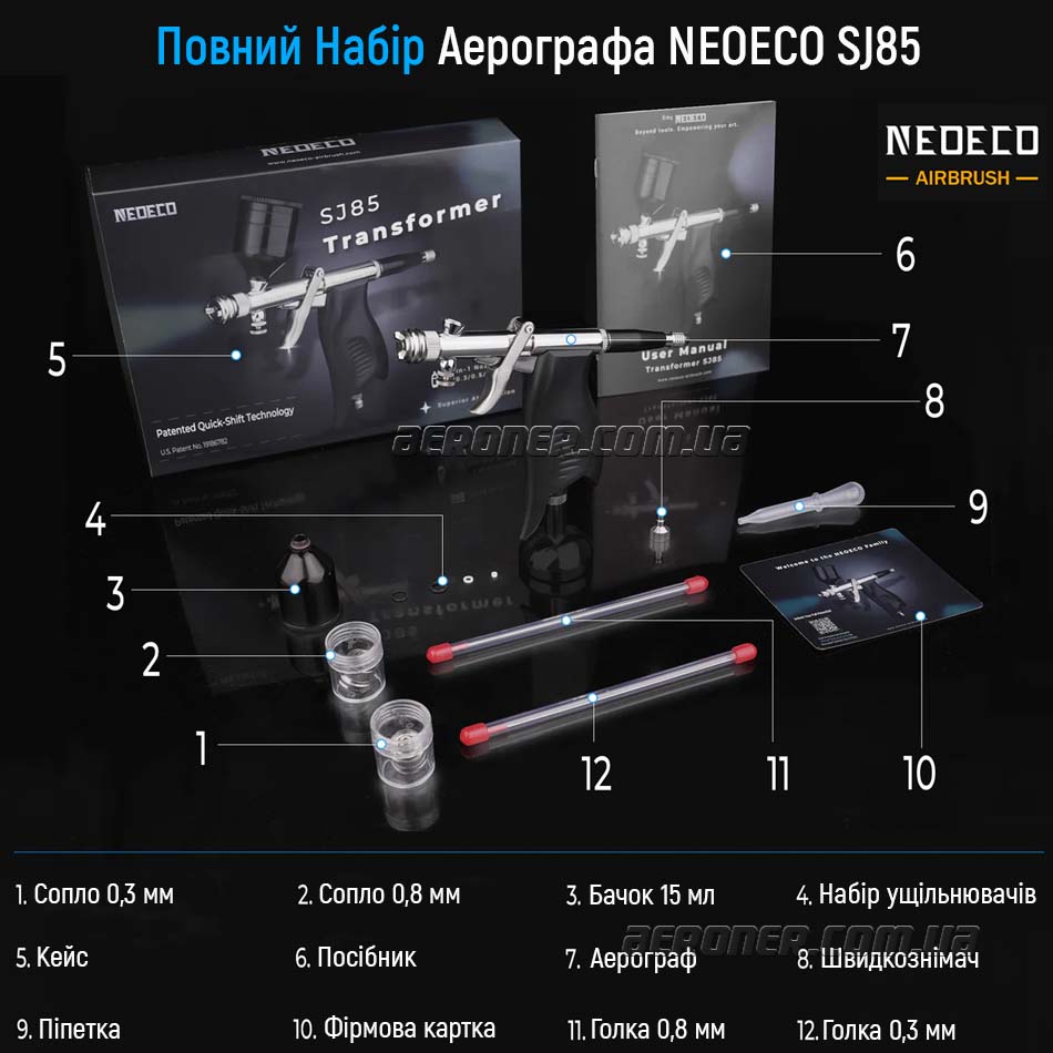 Аэрограф NEOECO Transformer SJ85 — универсальный инструмент для аэрографических работ, сочетающий продуманный дизайн, расширенные возможности и пригодность, как для новичков, так и для опытных мастеров.
