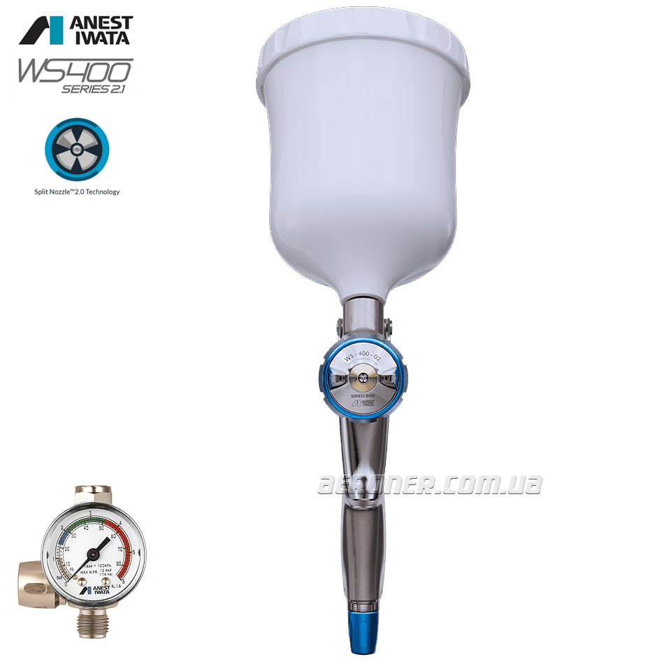 Iwata WS-400 Series 2.1 BASE Pro Set — Премиальный краскопульт для базовых красок на водной основе в наборе с манометром (2026г)