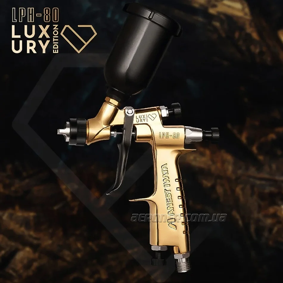 LPH-80 Luxury Edition отличается необычным дизайном и золотистым покрытием, символизирующим изысканность и эксклюзивность. Каждая деталь краскопульта тщательно проработана для сочетания элегантности и функциональности. Это не просто рабочий инструмент, а произведение искусства, отражающее приверженность эстетике и производительности.