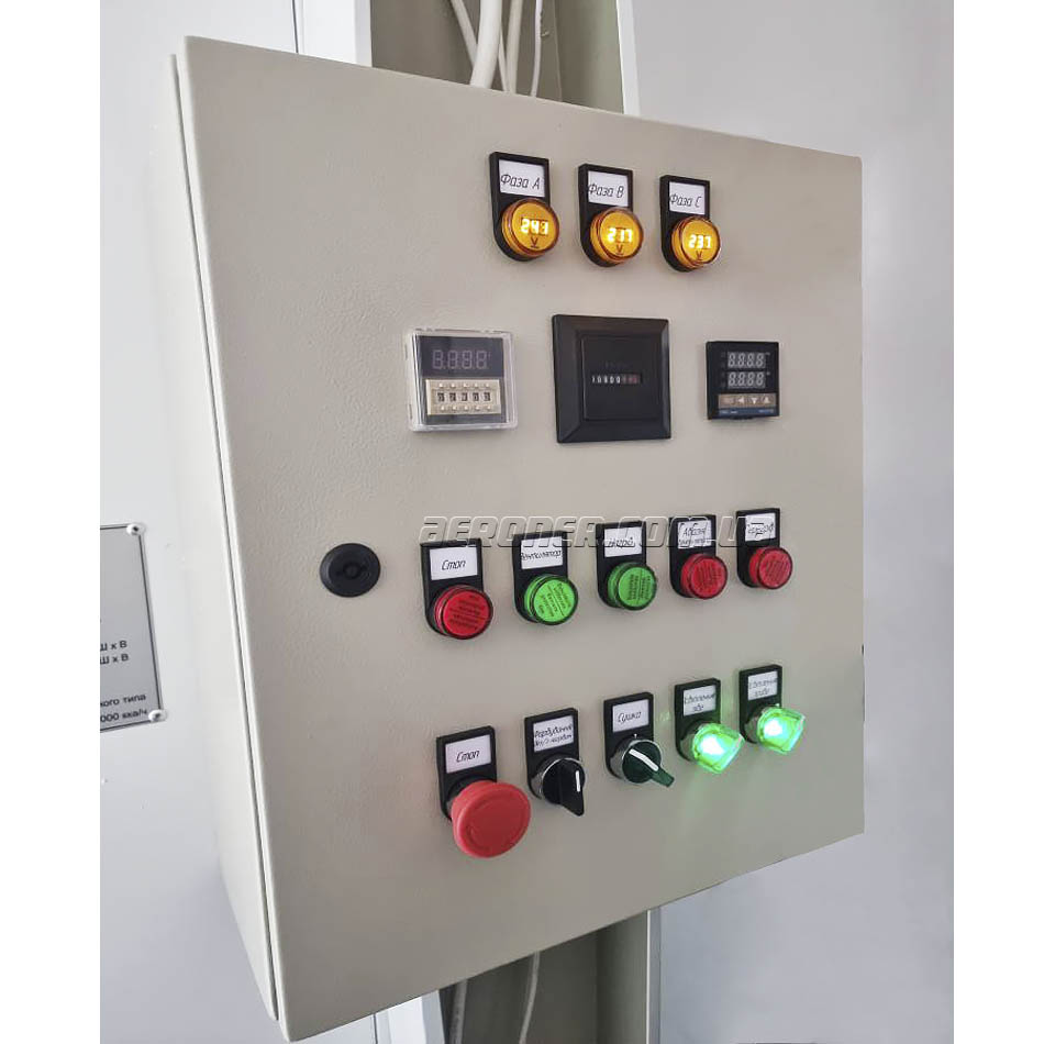 - Система контроля — Высококачественный точный контроллер управления режимами покраски и сушки (счетчик времени, регулятор температуры, аварийное отключение, индикатор неисправности, термостат, датчик прогорания бренера, датчик загрязнения фильтров).