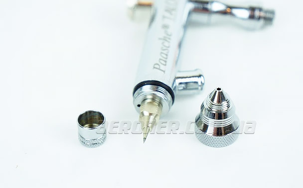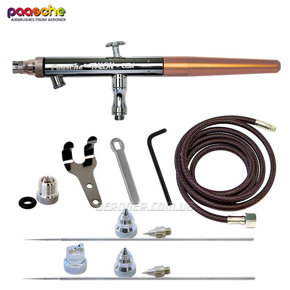Версия Paasche Talon TS-3AS отличается от стандартной более богатой комплектацией и включает в себя три распылительных комплекта (0,25, 0,38 и 0,66 мм) и шланг.