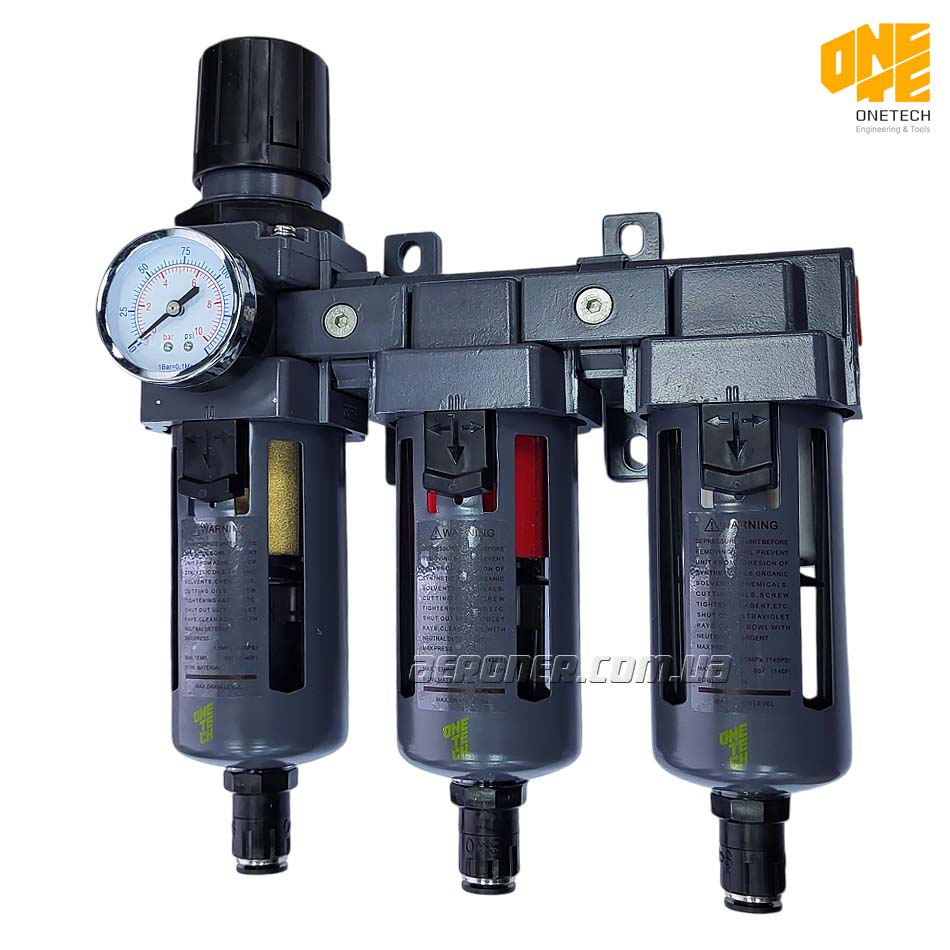 OneTech NT10-AFR-3-T60 — трехступенчатая фильтр-группа очистки воздуха с манометром и регулятором давления