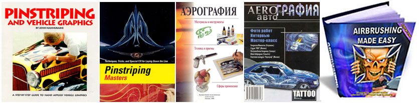 - Pinstriping masters (Мастера пинстрайпинга. Трюки и эффекты) — в этой книге 28 мировых ведущих профессионалов по пинстрайпингу делятся своей техникой. Книга построена на примерах с фотографиями и описанием. (eng)