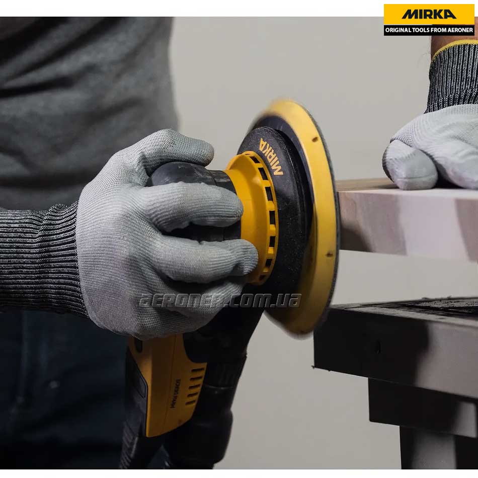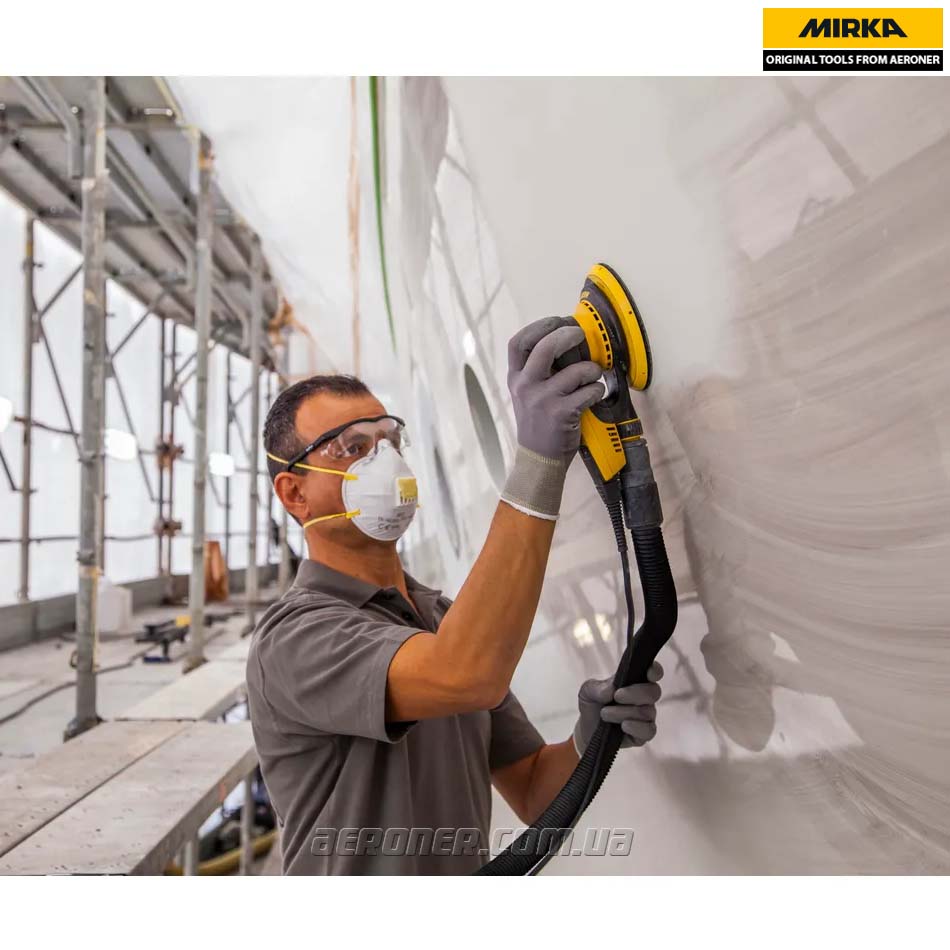 Mirka DEROS II 625 с рабочим диаметром подошвы 150 мм, разработанная для эффективного и беспыльного шлифования любых поверхностей.