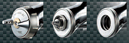 Новый улучшенный вариант исполнения воздушной головы. Широкие насечки на гайке воздушного сопла позволяют очень быстро и удобно отвинчивать и завинчивать его.