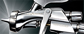 Эта супер профессиональная модель краскопульта, использует новейшие технологии распыления всех видов ЛКМ (лакокрасочных материалов), в том числе водорастворимых и HS (High Solid — твердое покрытие) лаков.