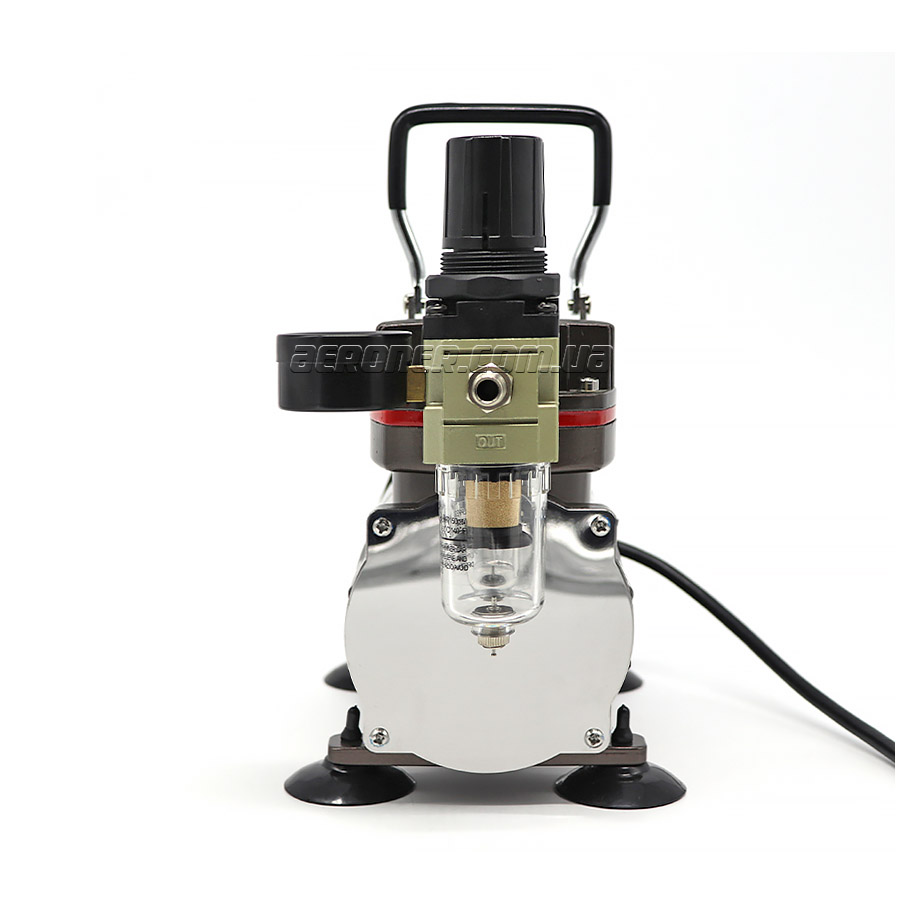 Простой и удобный безмасляный компрессор для применения в студии или квартире. Работает с любым аэрографом. Автоматика включает работу мотора только когда включается подача воздуха в аэрографе. Когда подача воздуха в аэрографе отключена — компрессор выключен.