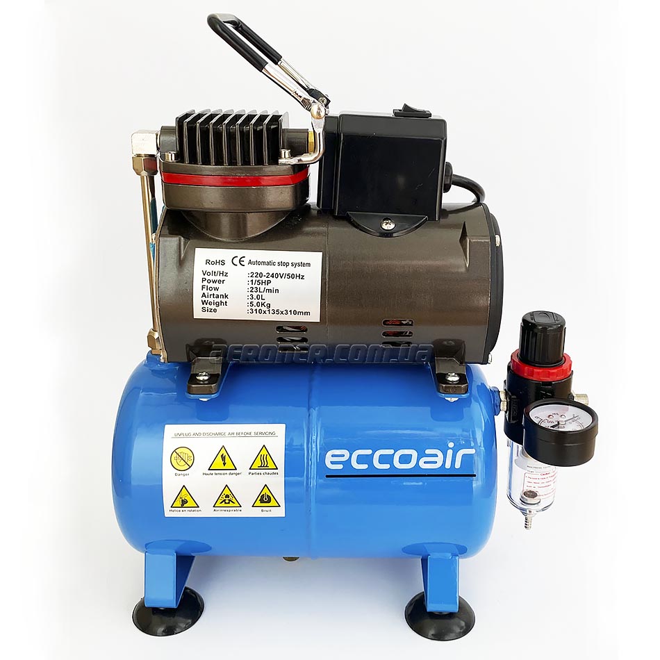 ECCOAIR TC-18T — одноцилиндровый компрессор для аэрографа с дополнительным охлаждением