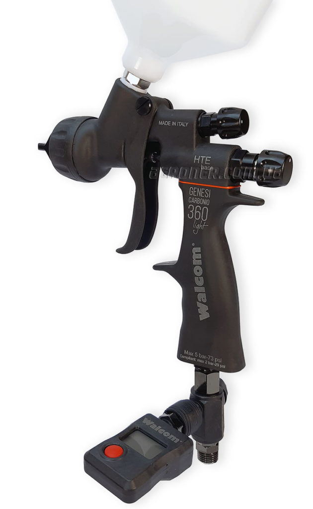 Walcom Genesi Carbonio Light HTE Base — обновленный карбоновый краскопульт для базы с манометром. Новинка 2020 года!