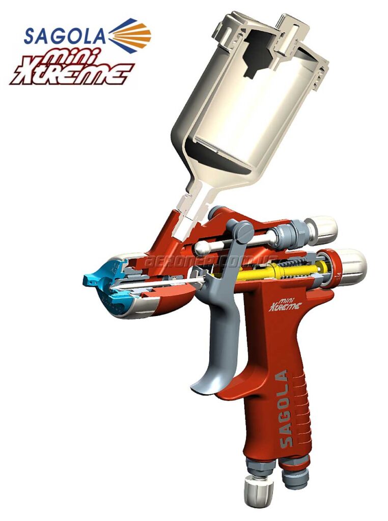 Компания Sagola создала Mini Xtreme легким, прочным и эргономичным. Конструкция миникраскопульта не требует каких-либо уплотнительных колец или прокладок в воздушных или красочных каналах. Это упрощает очистку покрасочного пистолета и увеличивает его надежность.