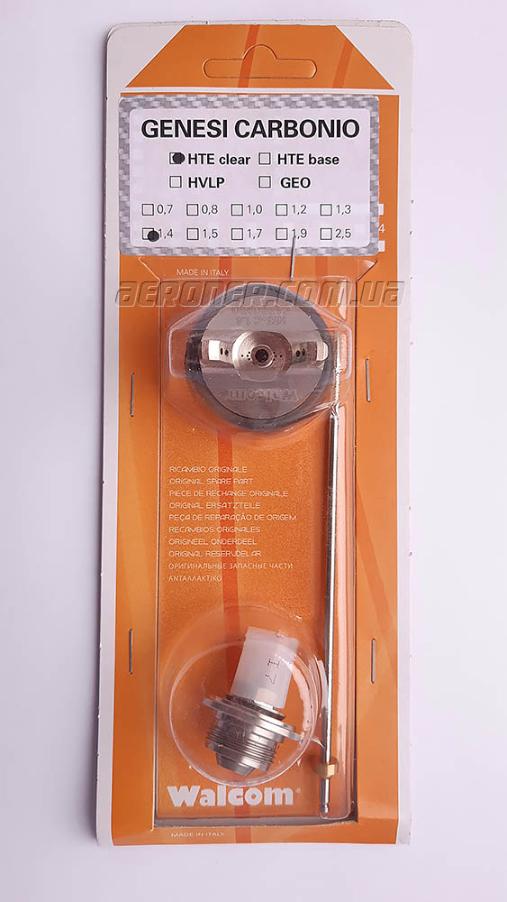 Набор запасных частей для смены диаметра. Сопла, иглы и воздушные головы для краскопульта Walcom Genesi Carbonio HTE Cleare