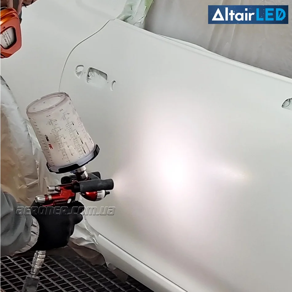 - Точный визуальный контроль: освещение оптимально для оценки покрытия, перекрытий и равномерности нанесения базовых металликов, перламутров и других лакокрасочных материалов.